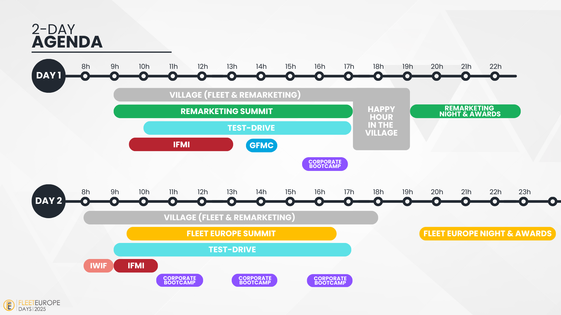 The Fleet Europe Days is a 2-day corporate fleet industry event offering ample networking opportunities, educational programs and new products and services discovery in the field of fleet and mobility management.